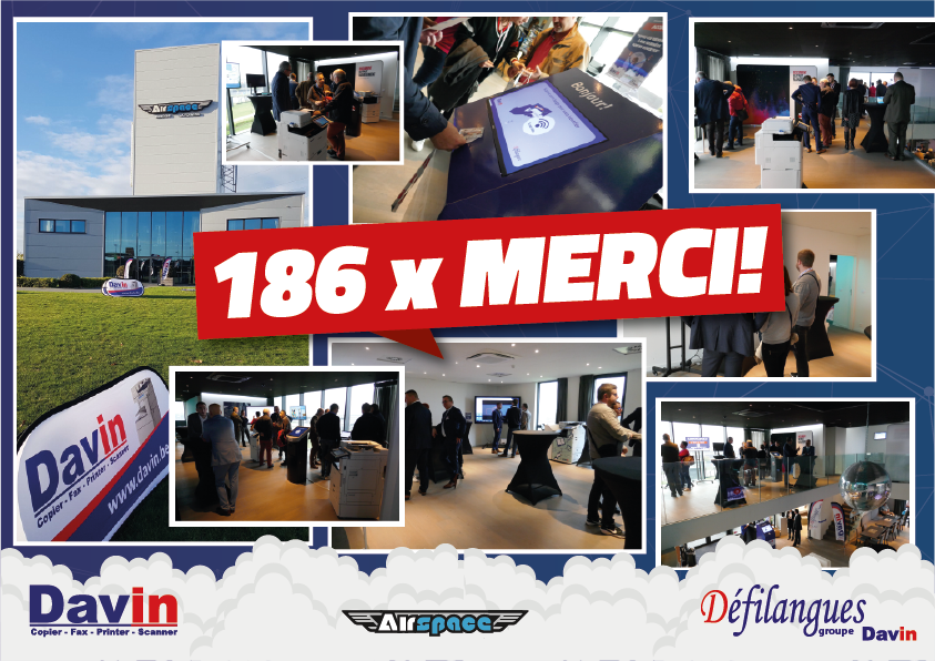 Davin & Défilangues organisaient leurs premières portes ouvertes depuis leur association, ces 24 et 25 octobre 2018 à l'Airspace Indoor Skydiving de Gosselies. Pas moins de 180 personnes sont venues découvrir nos 12 stands, présentant nos nouvelles solutions, produits et services. Nous remercions toutes les personnes présentes lors ces 2 journées, qui ont été un véritable succès!
